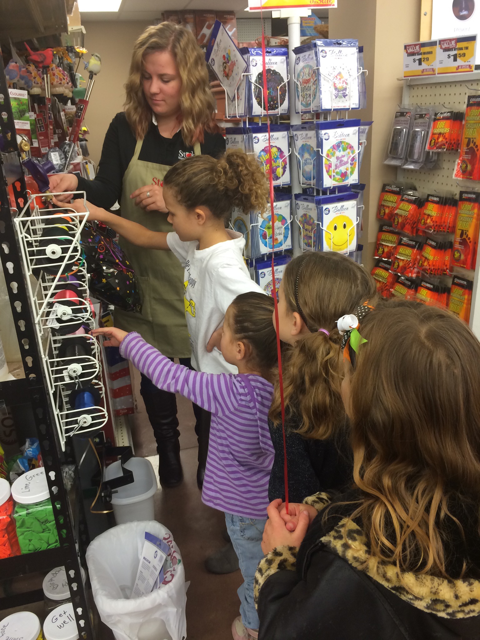 The girls were really excited to bring him balloons! They helped wrap his presents and then waited for him to come home…