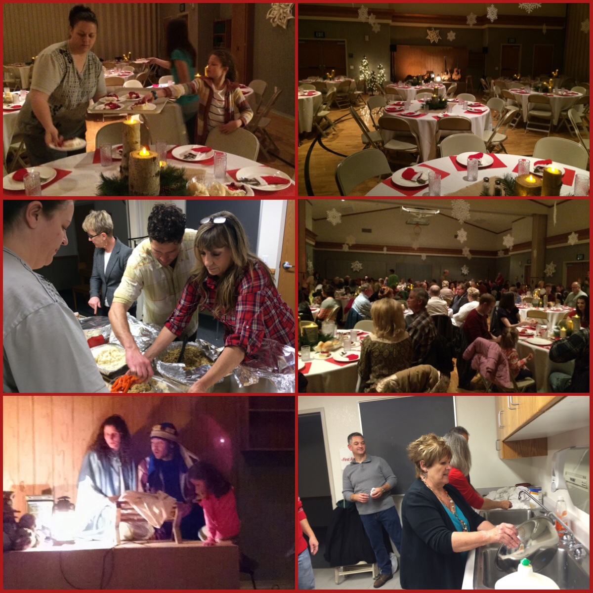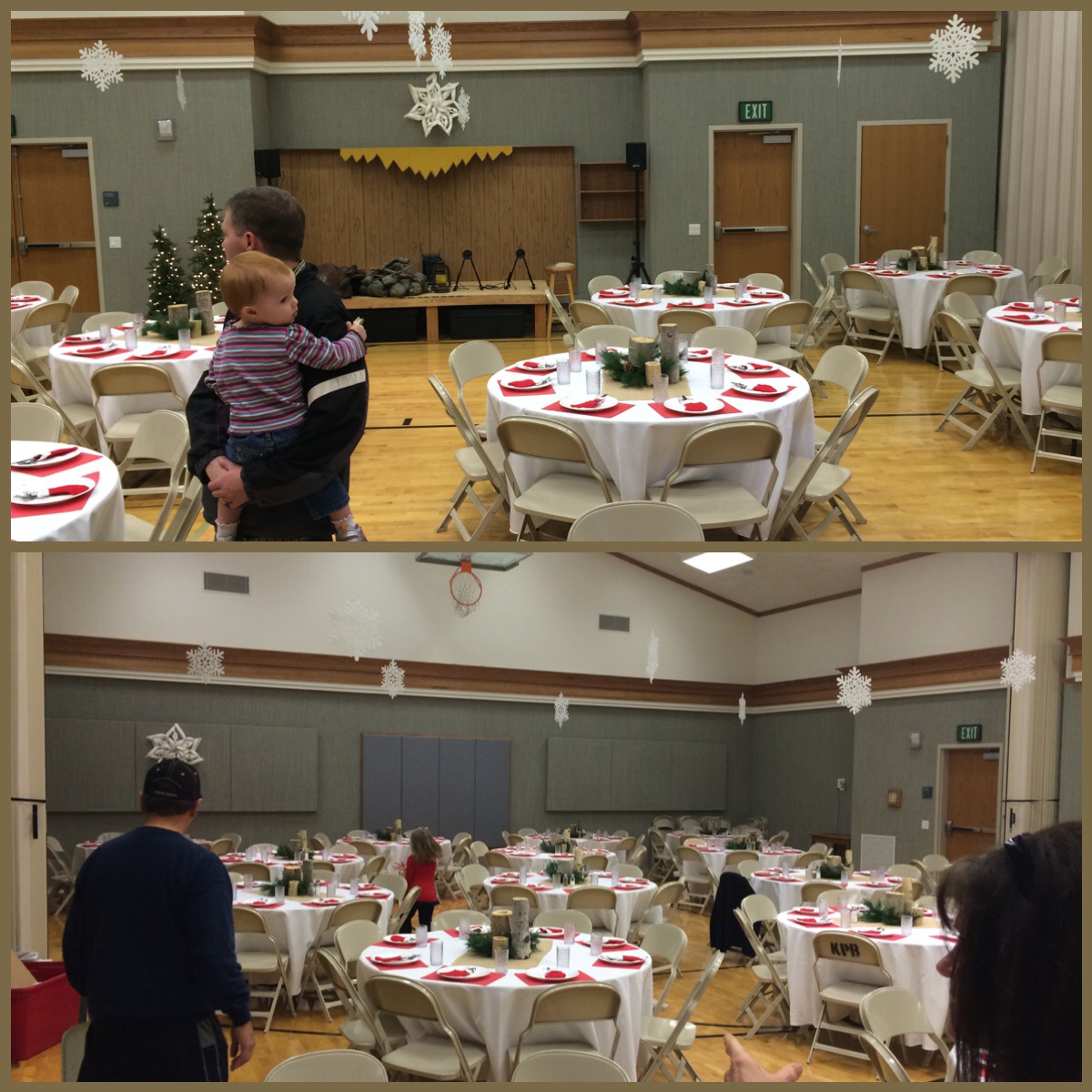 IMG_6209.JPG The girls said their goodbyes (with my 2nd just balling). The girls and I got up to leave so the vet, Corom and Mike could do what they had to do. My youngest kept turning around and yelling I love you. The vet did tell us that Harley lived longer than the usual lifespan of a mastiff. It was a sad moment but I explained to the girls as we were out in the waiting room that it was the best thing we could do for Harley. Corom, Mike and my 2nd child went up to bury our dog. The other 3 girls and I went to our friends the Barney’s house to put together a 12 days of Christmas thing for a family in our neighborhood. It was fun to put everything together (even though the Barney’s did most the work). We will start today and end on Christmas Eve… For dinner we headed back to the church. (We went early to finish the last minute touches from this afternoon). We then helped tray the food and get everything organized. We had an excellent dinner with about 200 other ward members. Corom and I played Mary & Joseph for a little program, then we stayed for the cleanup when the dinner and program was over. My kids were big helpers today!!! It was nice to not have to raise my voice at them all the time. 🙂 Usually they are touching everything or getting into things but they helped with the setting up.