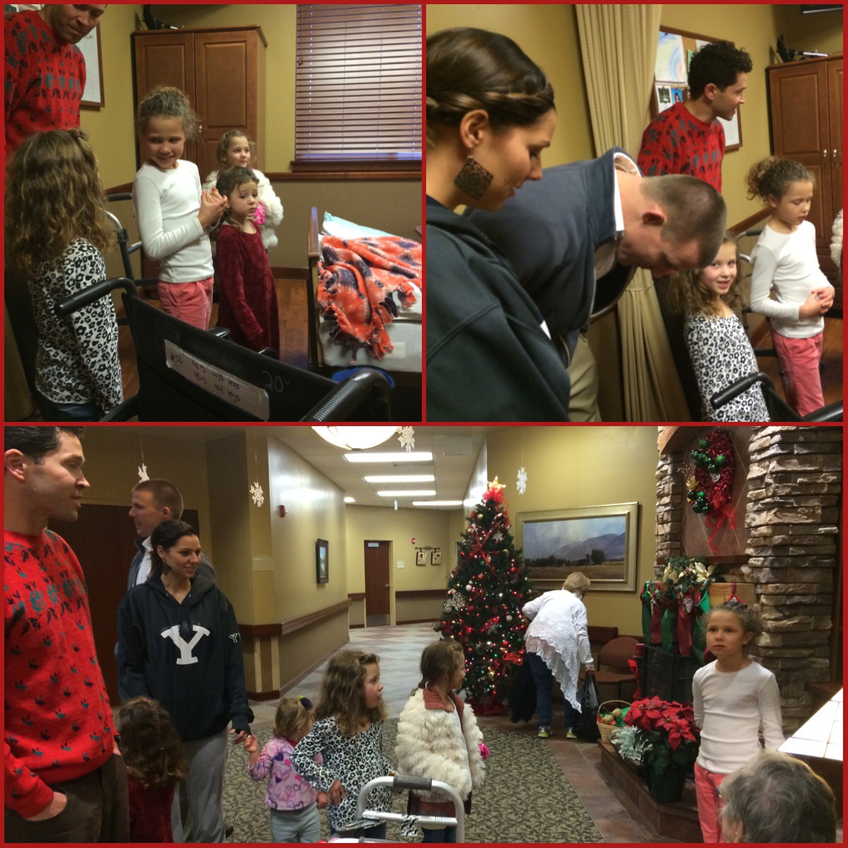 Sunday: Church was really good today! Great speakers for sacrament meeting and great lessons in the 2 other classes! For our Christmas activity we (Corom, the girls and I) along with the Barney’s went to the Assisted Living Home (for old people) to visit and sing Christmas carols. We are not the best singers… But it was fun. 🙂