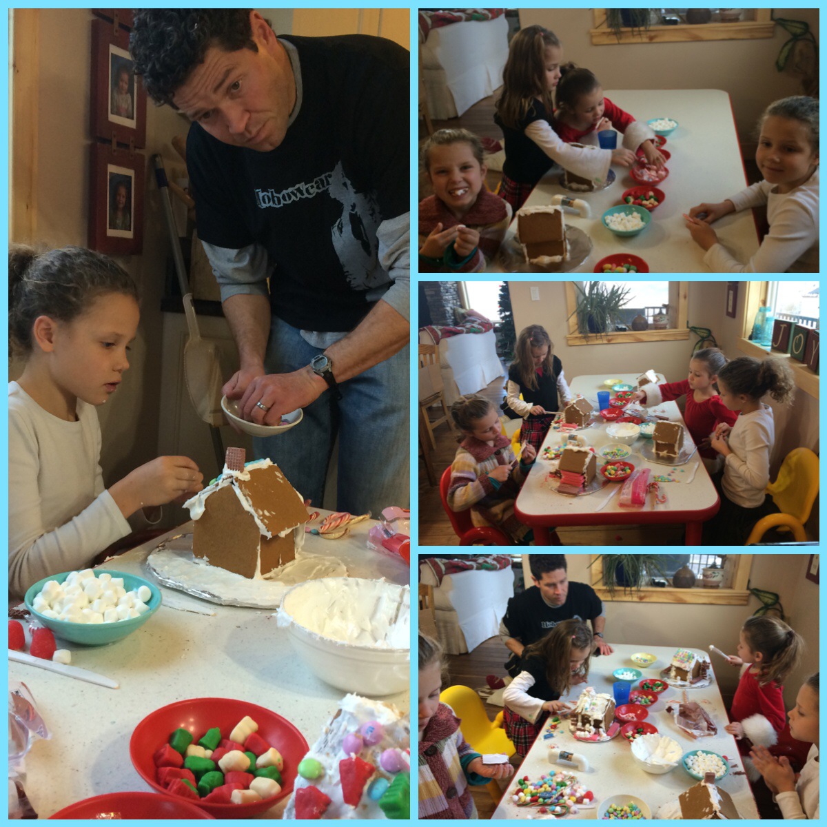 I sent them off on a run, then met up with Corom and the girls up at my mother in laws house. We were decorating ginger bread houses…