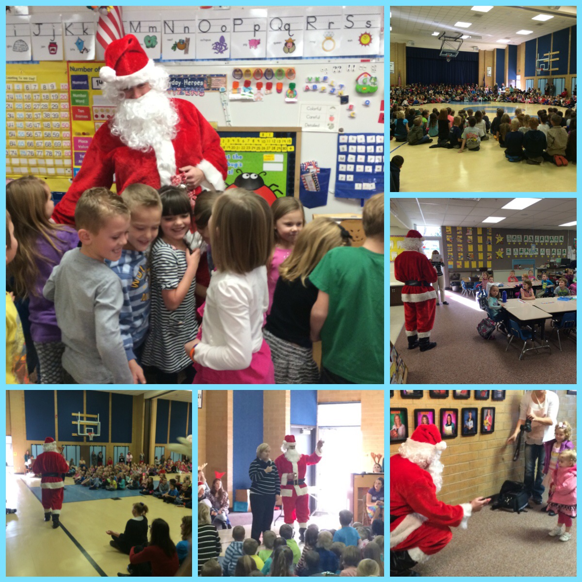 Friday: I met up with Amber, Rachelle, Megan, Melissa and Scott for my run. Amber and I took off from the group and would turn around and go back to them throughout the run. We ran for 1:04.24 today. The girls had an assembly at school today. All the grades sang different songs and then I arranged for a Santa to come in. My neighbor is awesome… Thanks Chris! He agreed to do it at 9:30 this morning. We thought we had a Santa lined up but realized late last night that we had no Santa… So Chris said he would do it!