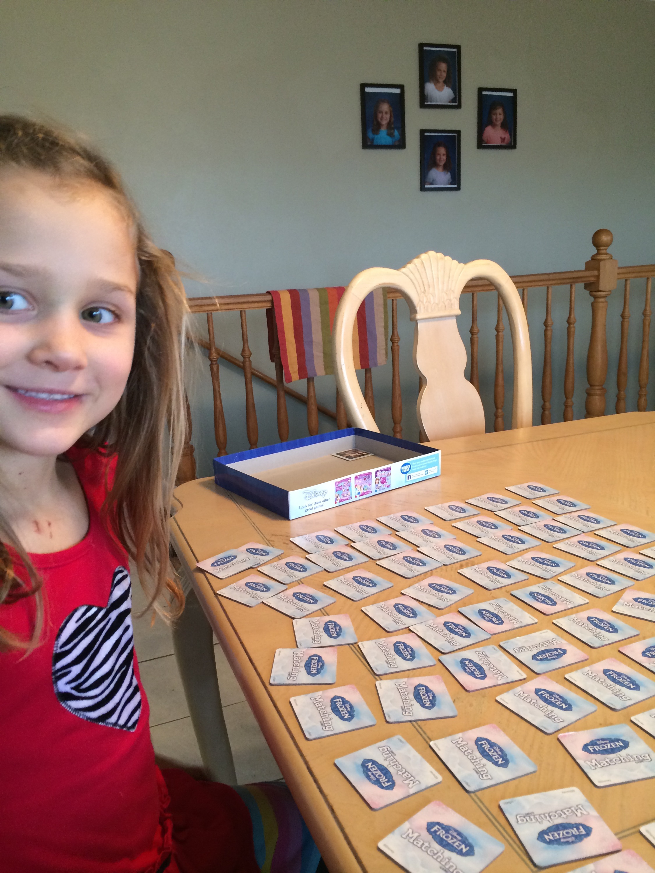 I felt bad because my 3rd daughter wanted me to play with her but I had to get some coaching stuff put together… So my guilt won and I actually combined the 2… I was able to work on what I needed to while we played the matching game.
