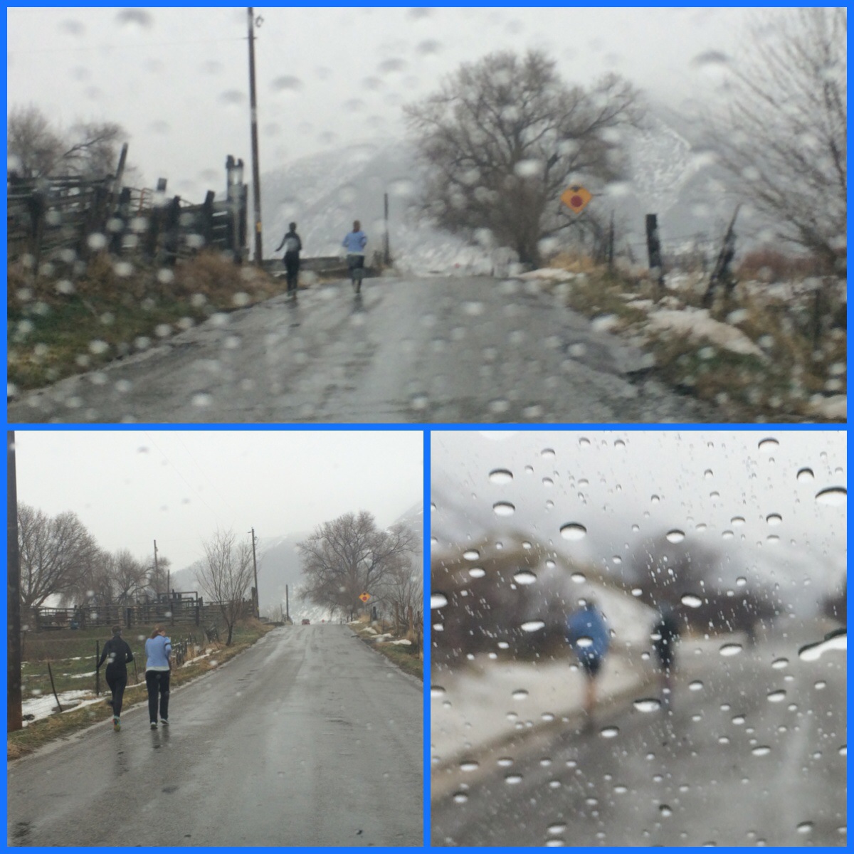 She beat me all 3 games, not because I let her but because I was at a disadvantage and not paying attention to the cards being flipped over. 🙂 It was still raining for track practice. I sent them on the Harry’s loop I went on this morning. It’s a good hill climb for the 1st half. They were soaked but kept going strong.