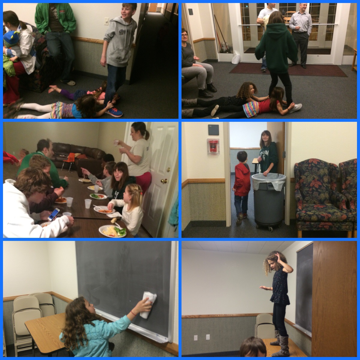 We had 4 families over for dinner (from our block). It’s our turn to clean the church, so we decided to eat dinner before and then head over to the church for cleaning right after…