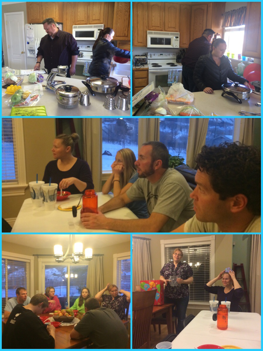 Sunday: We went to church today… Like I said… It was Stake Conference so all the Wards (8 or 9) met together this morning. I struggled today!!! My kids were everywhere today. They fought tons, cried a lot (all 4 of them), and were very loud. It was hard today to keep them quiet and to keep them from fighting! It was nice to come home after church ended. The Burks came over today and cooked us lunch… Chicken, potatoes, tons of veggies, etc. They have these pots that they are selling for a company… They need to cook dinner for 30 families… So of course we said we are good for them to come over. The dinner was amazing! They did a great job and it was nice hanging out!