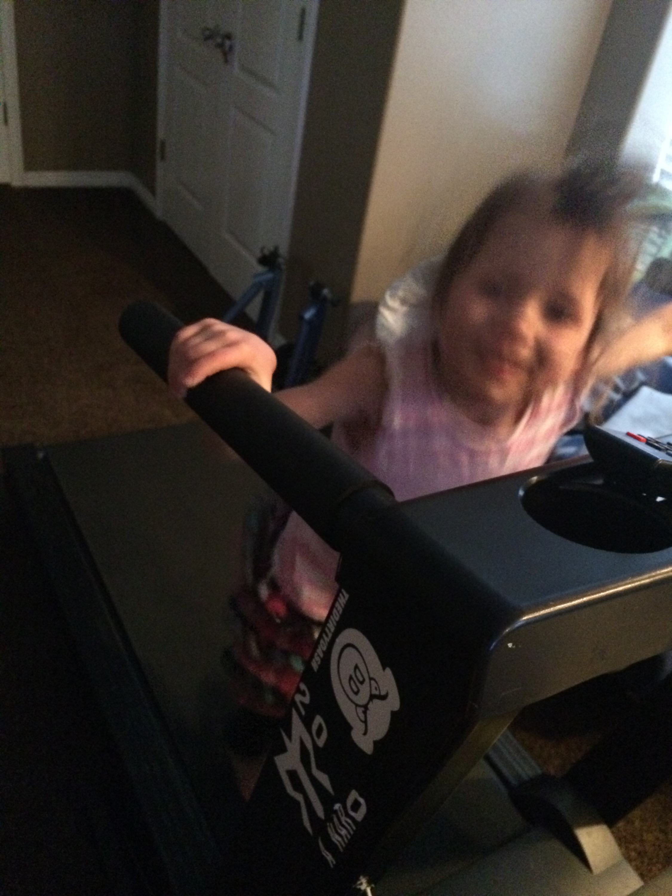 So I let her. π At home I ran on the treadmill for 50 minutes. I could not go any more! The treadmill is hard for me to run on! My kids love it though…