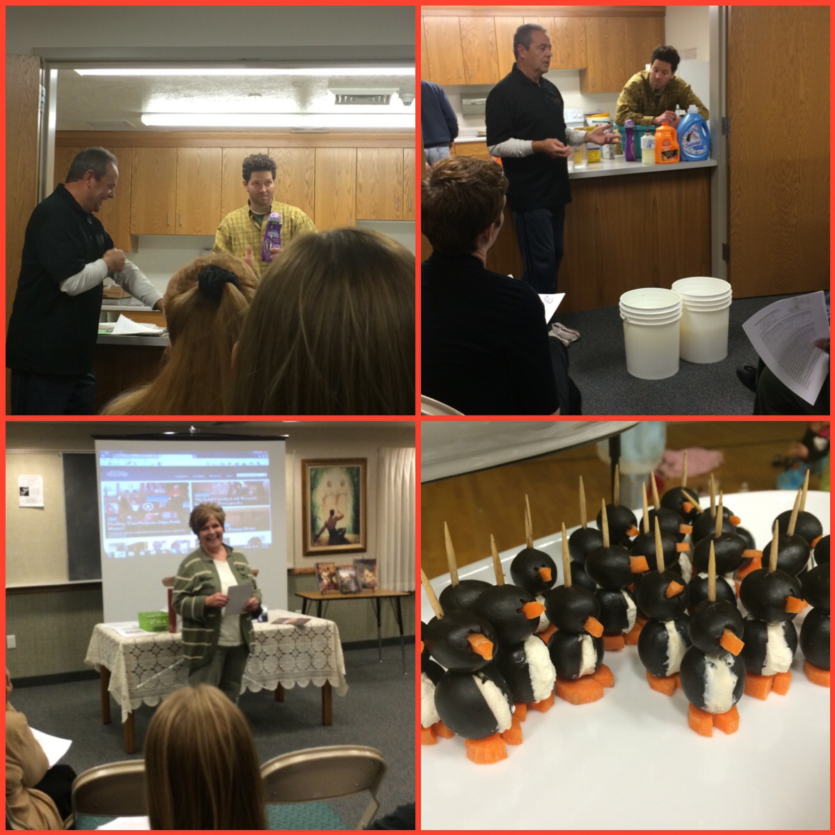 We had a church gathering tonight for the women. Corom hung around, too, because he just finished his meeting with the Bishopric. The girls hung out in the nursery room with a couple of the YW. We learned how to make laundry soap and different FHE (family home evening) ideas.