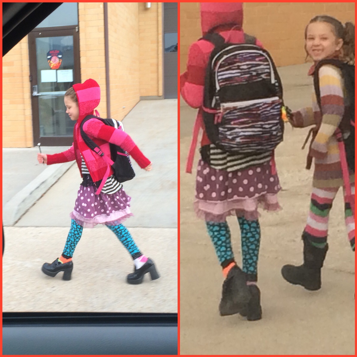 Friday: I was unable to get up this morning to meet everyone for a run. I took the girls to school… My oldest found some shoes she really wanted to wear today. π