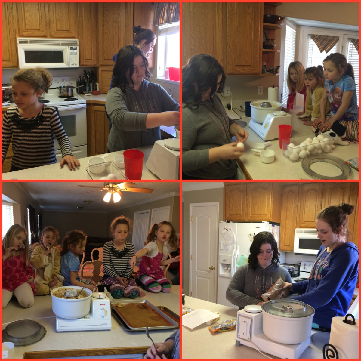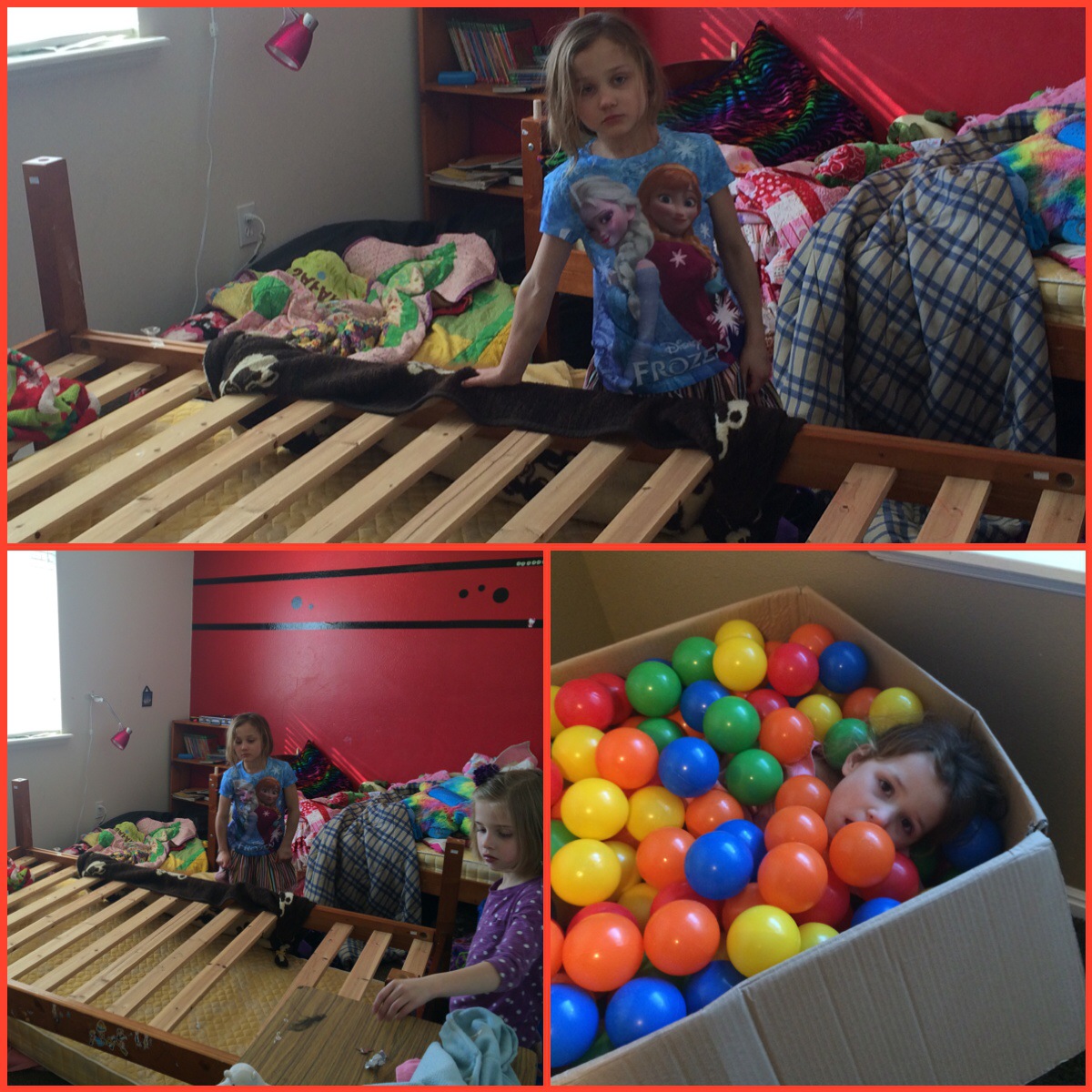 Talk about the Hulk trapped in a little ones body… She somehow knocked the top bunk bed off of the bottom bed. I don’t know how it happened! The younger one just played in the balls after we boxed them up. A couple of YW came over after school to make cookies… We had so much fun with them. My girls loved it!