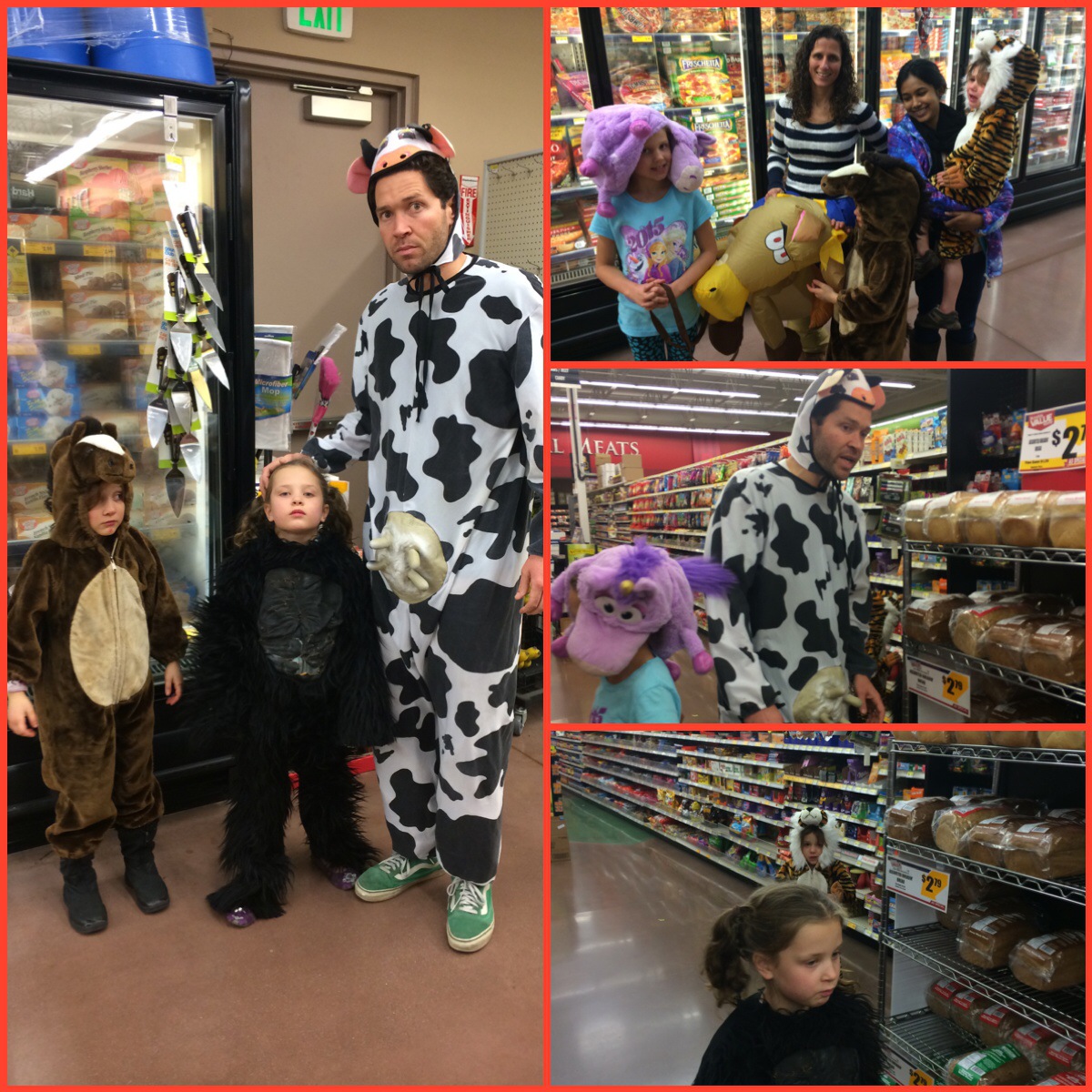 The Foriegn exchange student came just in time for dinner… We headed to the store (in animal costumes) to buy ice cream…