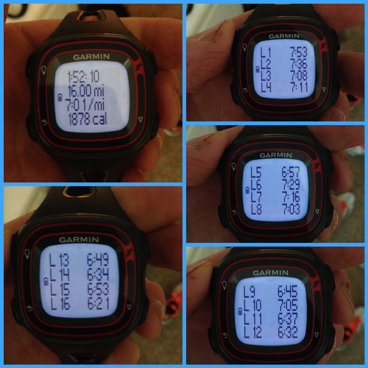 Saturday: I began my day with a 16 mile run trying to stay with Jeff. I felt a little sluggish at first and kept thinking this was going to be the longest run. But once I loosened up, I was able to change my focus on trying to stay in stride… I was pushed and felt uncomfortable at times but I have to admit that I like that feeling (when I’m done running). π It is also nice being able to have someone to follow!