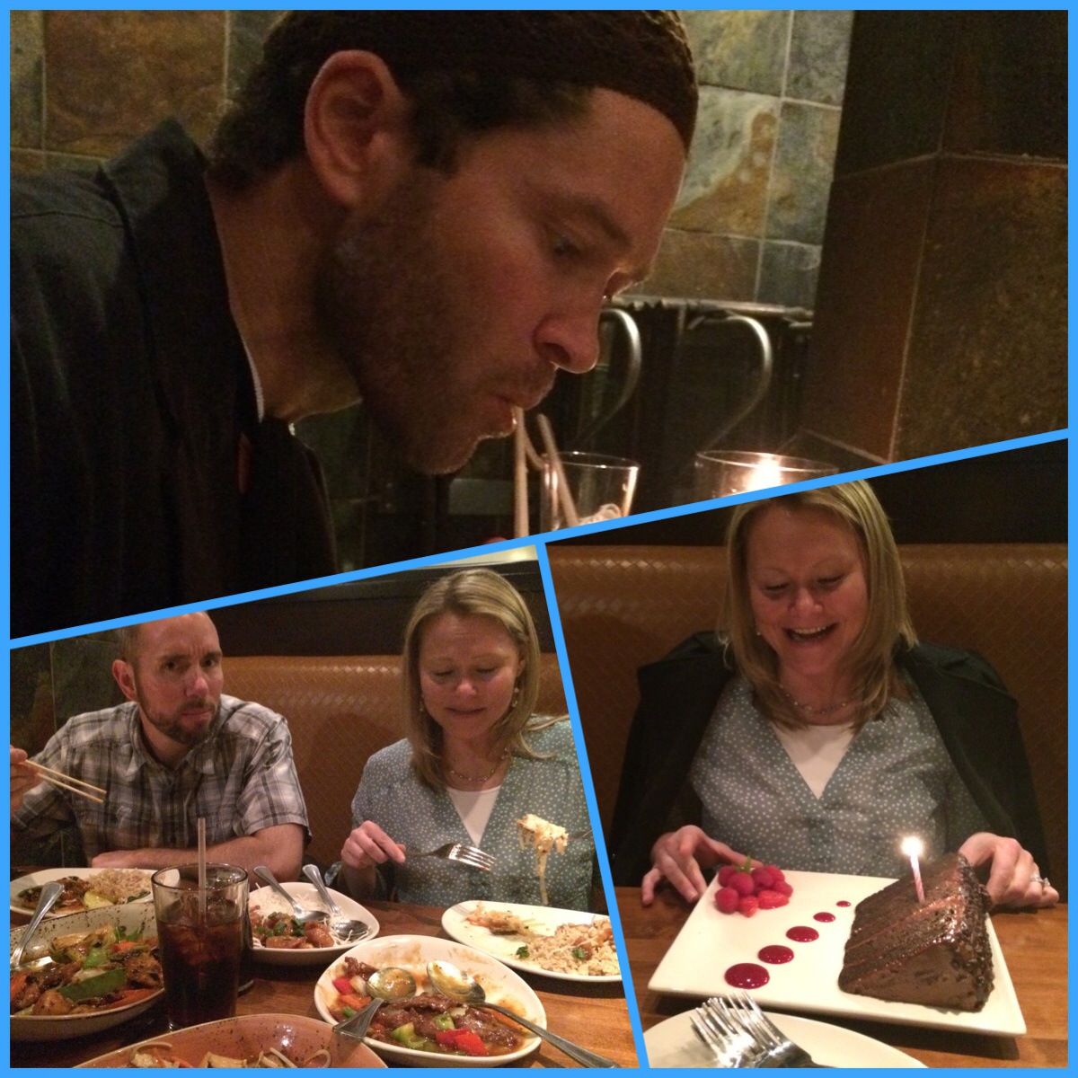 I left the meet early so Corom could go with some friends somewhere (Elder’s quorum thing). That evening a babysitter came over and hung out with the foreign exchange student and played with my kids, while Corom and I went to PF Chang’s with the Fullmer’s for Amy’s birthday. π