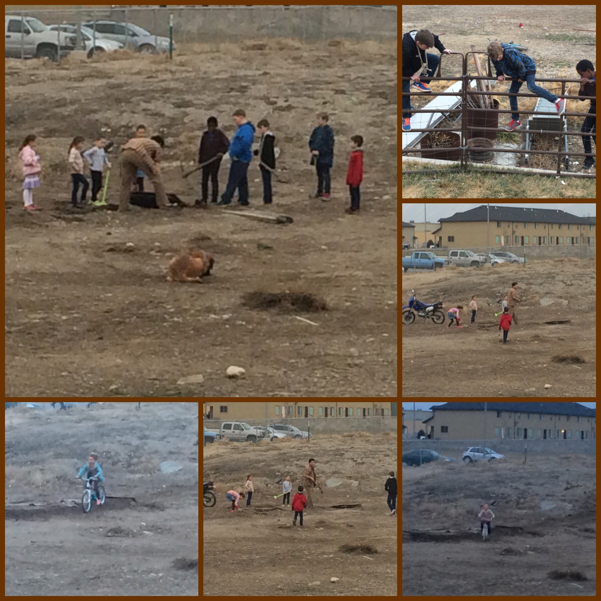 At home all the neighbor kids were over helping Corom build a jump for their bikes! It was fun watching them; especially Corom as he was acting like one of the kids!