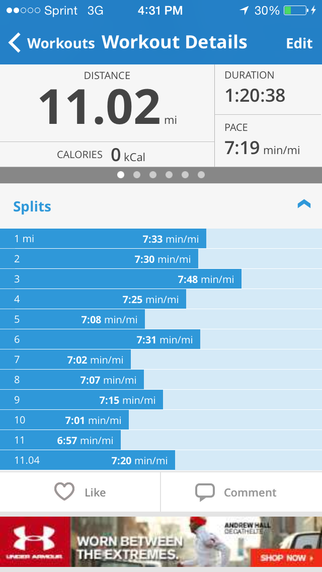 Friday: I met up with Danny for an 11 mile run. We went at a good, talking pace but did have to climb a few good hills.