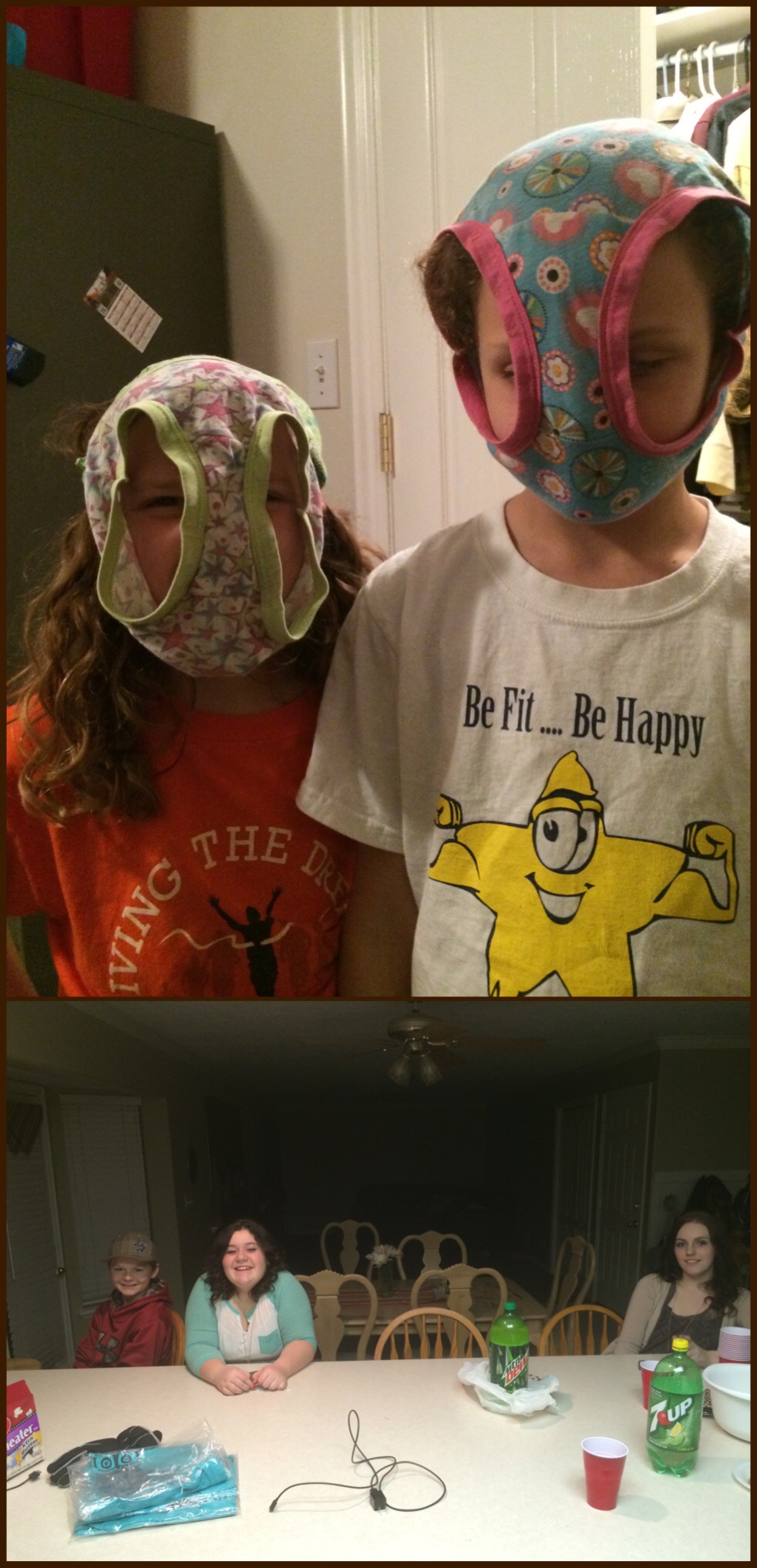 A few girls in our neighborhood wanted to do a movie night at our house tonight. We didn’t care… So about 8 or 9 kids came over for a movie. My girls, of course, had to act up! They get so excited when people come over…