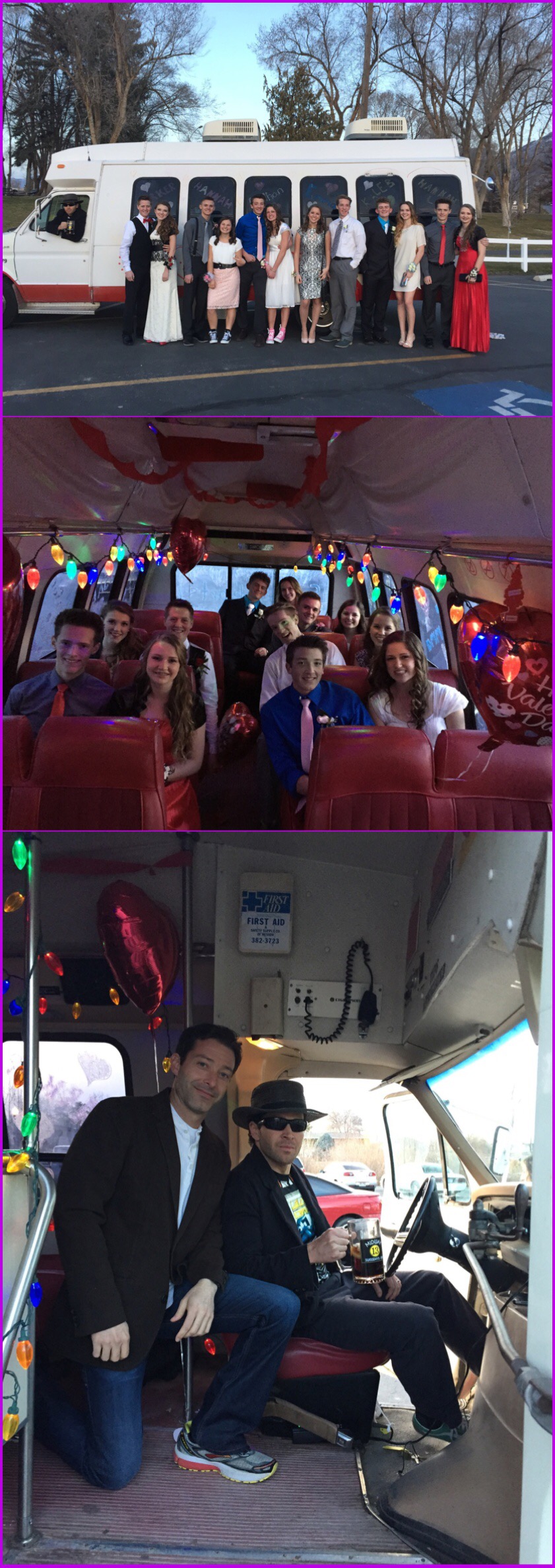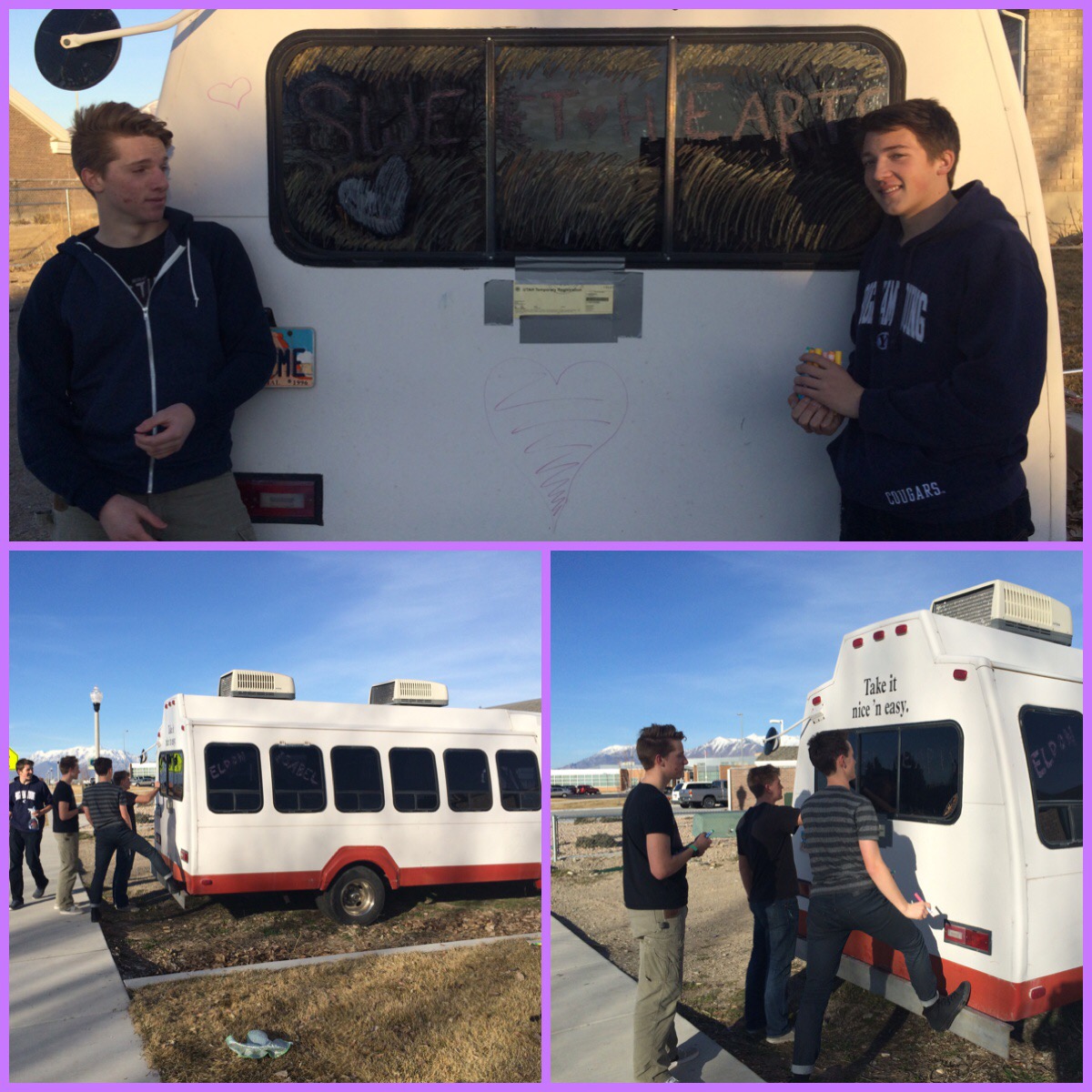 Our nephew and his friends came by to decorate our bus… They are having Corom (and Corom’s brother, Jarom) drive them and their dates around for the HS Sweetheart’s dance (Friday night). They had so much fun, but Corom seems to always be the entertainment!…