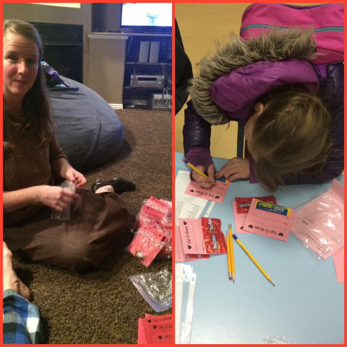 Wednesday-Friday… School Stuff & after school stuff: Every morning before school, the girls and I helped with the valograms (Valentine handouts).