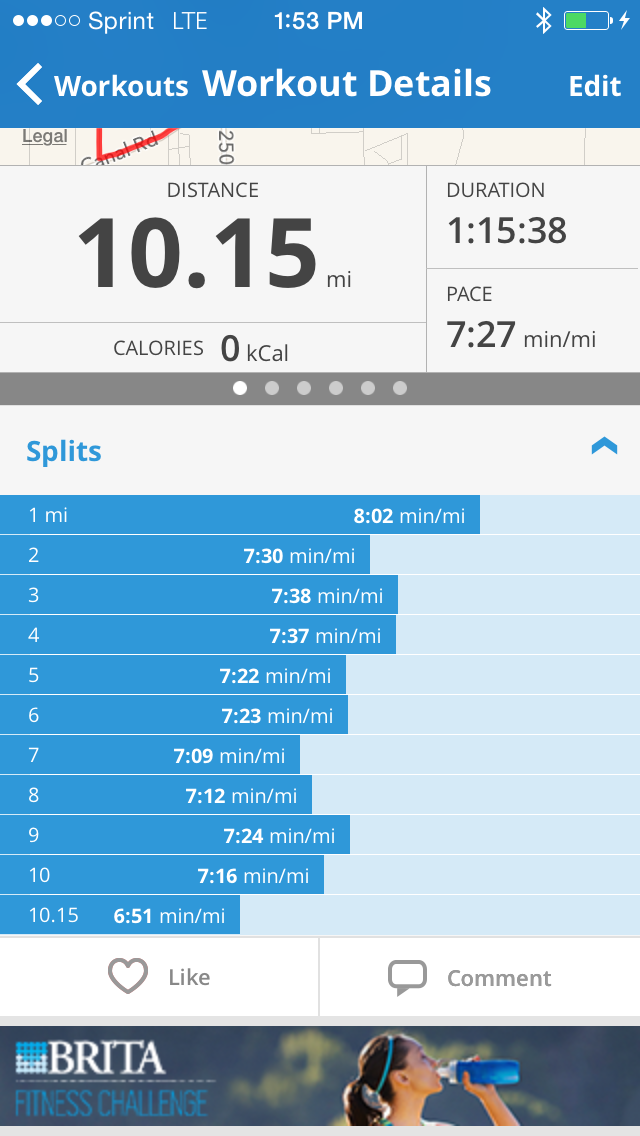 Monday: I went out for a 10 mile lone run. It was supposed to be a recovery run but it was really windy! So running against the wind was hard and trying to hold back at a slower pace was hard when the wind was to my back.