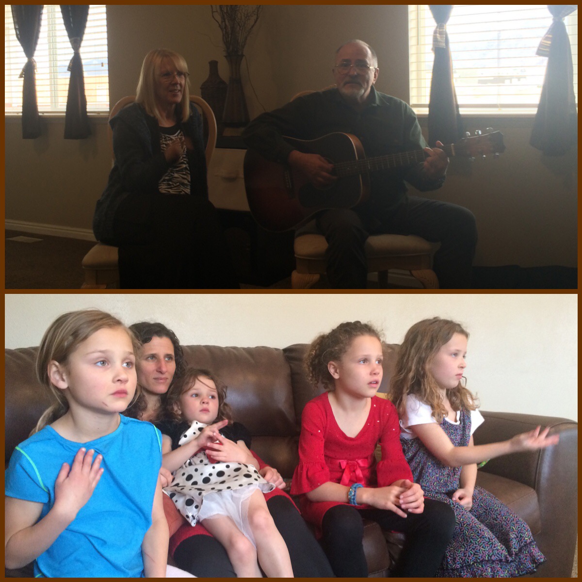 Sunday: We went to church today… It went by rather smoothly. The girls were good! We had our home teachers come (another church term :)). He sang us a few songs and I never saw all 4 of my kids quiet for that amount of time. It was great!