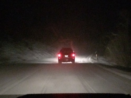 … Then took off (around 3:30 p.m.) to drive home. It took us forever to get home. About 4 hours into our drive, we hit a snowstorm. For most of the way, we drove about 25-45 mph. It was quite the drive!