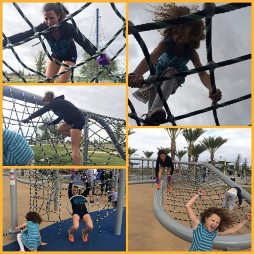 So of course… My oldest wanted to race next. At first I thought I was going to have to hold back to “let” her win… I was wrong… Once we started, she took off and I was really struggling with the nets. It was hard!