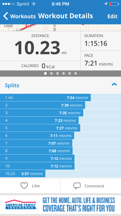 Monday: I went out for a 10.2 mile easy run. I felt great.