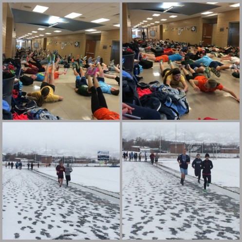 I was glad when this workout was over! For the rest of the day… I stayed busy! I worked at the school all morning for PTO stuff (I did take a 30 minute break to run to the gym… My 2nd time doing squats :/). Yep… I’m still not good at them. The 2 younger girls each had a friend over until the other 2 got out of school. We had a good snow storm come through today… We haven’t seen snow in a long time! I still had the poor distance runners do their track workout out on the track. 🙂 I did run the 2 mile warmup with them…