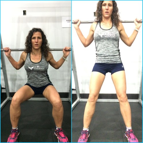As you can see, I am not getting the squats down. 🙂 The bar is crooked and I’m laughing in the top picture because Corom is making fun of me… So he switched me over to another squat machine. That was easier!