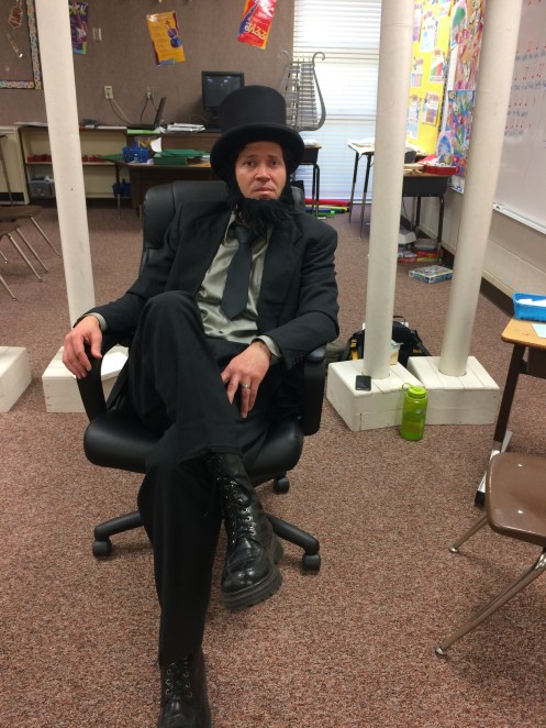 Corom and I hung out at the girl’s school all morning. It was the Kindy 500… Corom played Abe Lincoln for one of the stations…