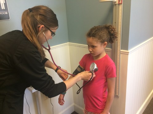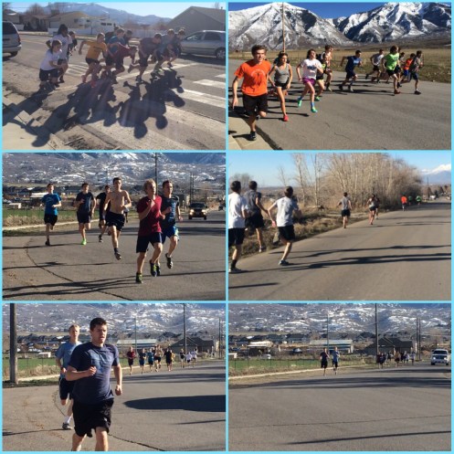 Yes… It hurt for him to take it off and did make him bleed in a few spots. 🙂 Corom went straight to work and my 2 younger girls and a little girl I babysit went back home for cleaning and playing. Soon it was track practice… The mid-distance and distance runners had a tough workout today. For the distance, they ran 2 x 1 mile and then 2 x 800’s (downhill). The mid-distance ran 8-12 x 350’s at a 1% downhill slope. This workout is tough because it’s all faster than what you would normally do on a track.