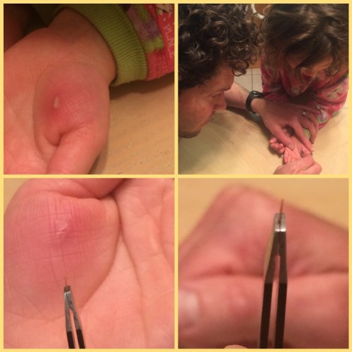 My youngest informed us that she had a splinter that needed to be taken out. I don’t know when she got it but it had to have been at least a couple of days ago. :/