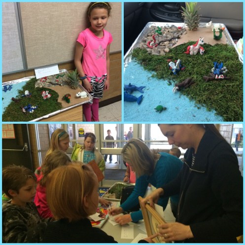 Corom, the girls and I went to the school early to help with the Arts Fair registration. My oldest worked on a “animal kingdom” made out of clay.