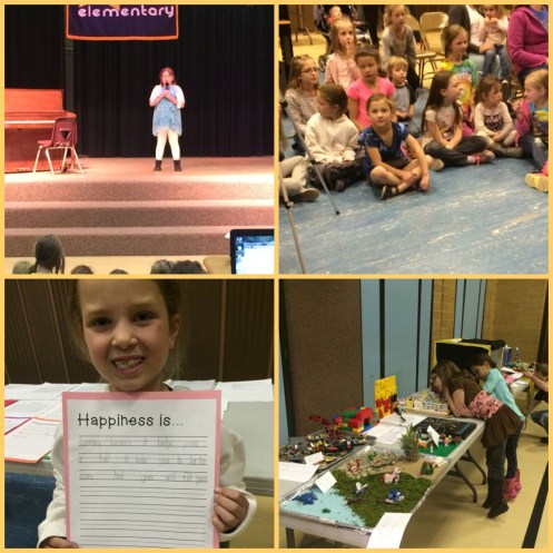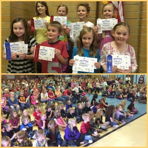 I wanted to make sure I averaged about a 6:50-7 minute pace this morning. I did have a good downhill for 2 1/2 miles… That always helps! 🙂 I watched a couple of kids today and then we headed off to the school’s assembly (the PTO was putting it on for the Art). It was fun for the kids to be able to show the rest of the school their projects, paintings, literature, performances, etc.