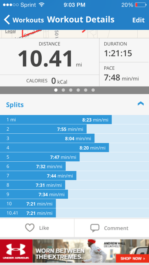 Monday: I went out for an easy run! I tried to stay closer to the 8 minute pace. There are times that I just pick up my pace without realizing it and I make my easy run into a moderate (not fully recovered) run.