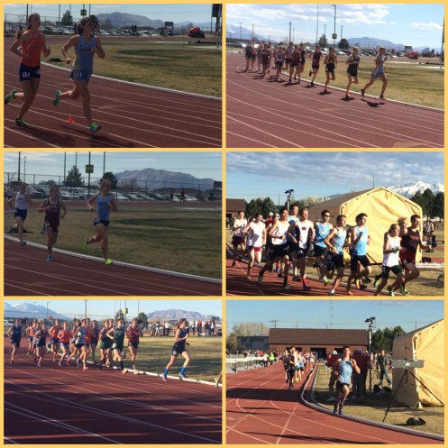 I was able to come home, get ready, get my girls ready and make it to the track meet by 7:45. The HS kids ran good miles… Most of them not their PR (I think only 2 PR’d this morning), but still ran fast times (I only had 6 qualify for this meet in the mile… 3 girls and 3 boys… It’s a tougher meet to get into and it’s based on their times.) The 800’s were next for the distance part of the meet (which was a few hours later)… The 2 boys that qualified had good races. I PR’d and the other was so close but then hit a wall the last 100. It happens. 🙂 The 2 female racers from our team ran great 800’s. They both looked strong! The 2 milers were the 2nd to last race… Oh this was a fun race to watch. Our top female and male both had huge PR’s and qualified for State!!! (He ran a 9:33 and her time was a 11:24.) It was so exciting. They looked great and did not let up. The other 2 male racers ran strong. They also PR’d. They ended off well.
