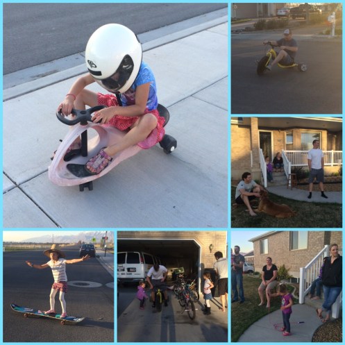 It took a while to get a picture where all 4 would cooperate. Church was everything I needed to hear (testimony meeting). And the 2 blocks after sacrament meeting was great. We had the Barneys over for dinner and then Megan and I went out on our “visits” for RS. When we came back, our hubby’s and kids were everywhere. A few other neighbors stopped by to hang out when they saw us goofing off… It was a nice evening!