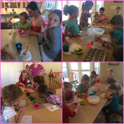 We did have a few families over for dinner and Easter eggs… (There is a new mom and her 2 young girls that moved in… We had her over with another family that had kids the same age as hers)… It was fun.
