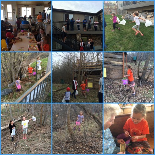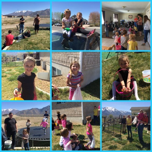 and then watched the 2nd session of Conference. We went up to Corom’s mom’s house for Easter dinner and an egg hunt… It was great food, great company and an even better Easter egg hunt. My 3rd child made out with $24, my oldest $8, 2nd oldest $1, and my youngest $6. With lots of candy as well.