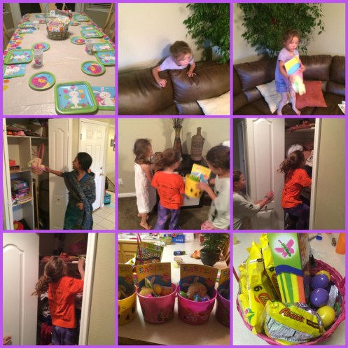 Sunday: It is Easter! 🙂 Corom and I went to bed way late and got up early! The Easter bunny did come but he hid all of our baskets…