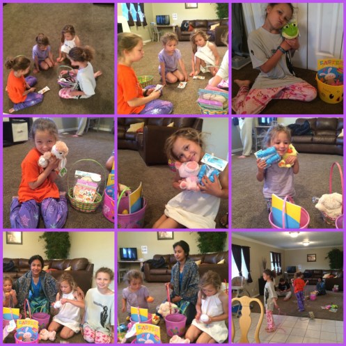 The Easter Bunny knows how much Corom and I love Reese’s peanut butter cups. The girls 1st went through the basket that grandma and grandpa Hansen sent out and then they went through the Easter Bunny’s basket…