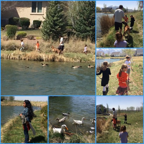 We had a nice breakfast and then enjoyed General Conference… Well the girls were a little noisy and hyper but that is to be expected. We drove little goodies around to some neighbors, walked around the pond…