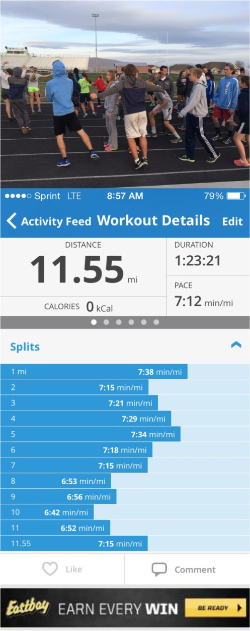 Walter and I did take off… I followed him and just tried to stay with him on both sets. I know for our 2nd set we averaged a 5:45. With my Achilles, I decided to stick with 2 sets only. Ugh! This is driving me crazy. I did have to hurry back to make it to track practice. I sent the distance runners off to do 3 x 1 mile repeats. It was tough!