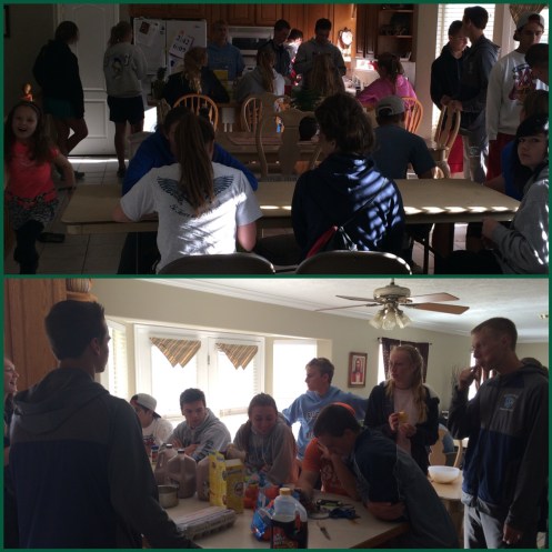After practice, about 40 kids came over for breakfast (the sprinters and field eventers, too)…