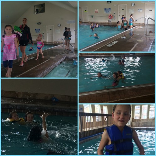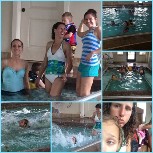 I ran over to a friend’s house (Jossie)… She scaped my calf, ankle and Achilles so good, that tears were streaming down my face. It hurt so much but it felt better after (well a different kind of soreness). I took the girls swimming at Rachelle’s indoor community pool. Amber, Amber & Heather also showed up with their kids. The kids had a fun time…