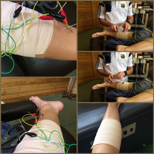 I had acupuncture and some type of laser/shock thing set up. Oh it was uncomfortable… My calf would twitch and move and it was the weirdest feeling.
