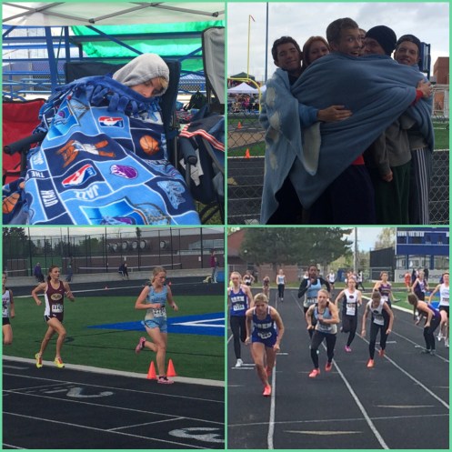 Saturday: I woke up early to head out for a HS track meet. It was a cold day with rain and wind at times. The kids performed well and our girls team placed 1st out of 48 teams. They are doing so well. We do have a few (girls and boys) that are trying to fight off injuries… We just have 3 more weeks of the season and are hoping they can stay healthy for that much longer!!! As you can see, plenty of blankets were brought and plenty were shared.