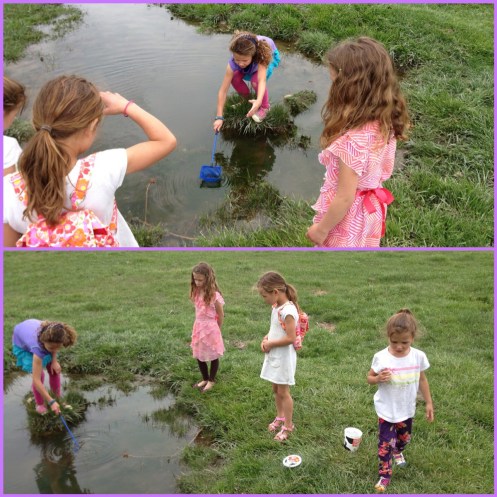 Corom and the girls had quite the day… I will have to say that I came home to 9 (or maybe 12) new baby chicks. He first made them clean all of the downstairs, then they went across the street to the pond to catch more fish for their snakes.