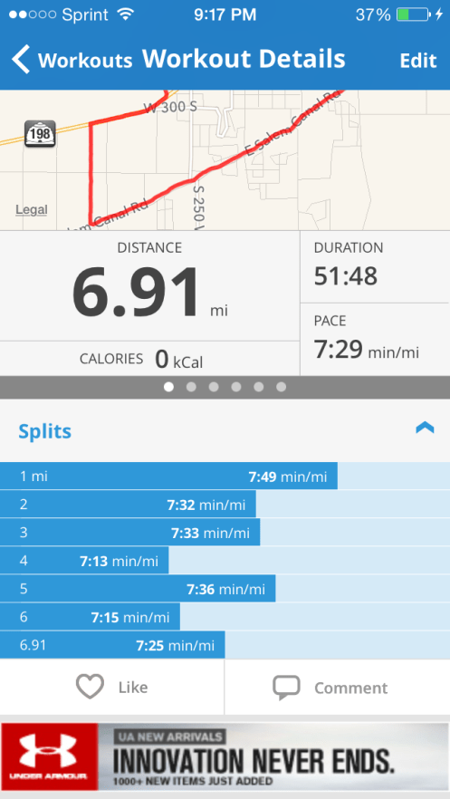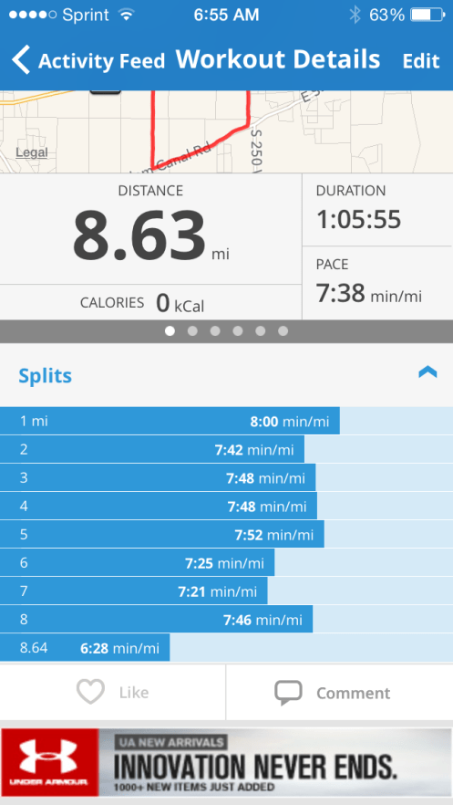Friday: I was able to get 8 miles in with 5 strides for my morning run. Jeff joined for 4 miles but had to stop due to a knee issue… My youngest was up once again throughout the night( not as much though, thank goodness). I am so sleepy on my runs.