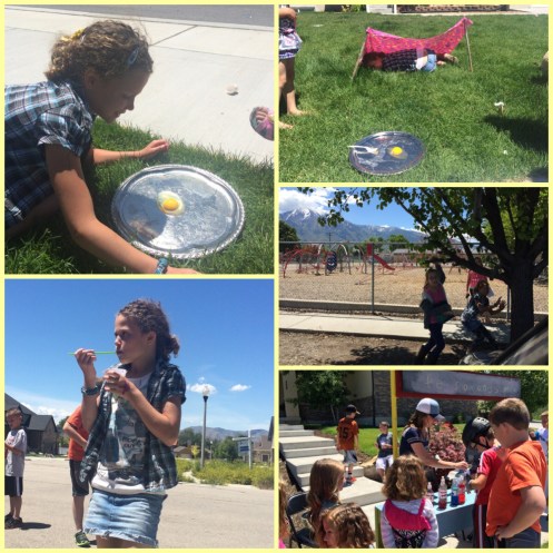 At noon we picked the 2 girls up from their last day of school and then stopped off at a friend’s house for summer celebration snow cones…. Then my oldest tried to fry an egg outside on a cookie sheet. It was funny to watch her and her sisters camped out on the lawn hoping to see it cook. Yeah… It didn’t harden at all. 🙂