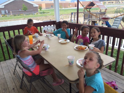 I was hoping to wear the girls out before church but that didn’t happen. Or maybe it did and it could have been worse. 🙂 We had a family over (that sat right next to us) for a fun lunch of quesadillas. Something easy but yummy. Then that evening we went to coach Thompson’s (the other coach I coach with) house for dinner…